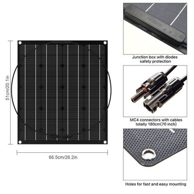 Ευέλικτο ηλιακό πάνελ: Το ηλιακό πάνελ από πλαστική πλαστική πλαστική πλαστική πλαστική πλαστική πλαστική πλαστική πλαστική πλαστική πλαστική πλαστική πλαστική πλαστική πλαστική μπορεί να καμπυλωθεί σε τόξο μέγιστου 30 μοιρών και να τοποθετηθεί σε τροχόσπιτο, σκάφος, καμπίνα, σκηνή ή οποιαδήποτε άλλη ακανόνιστη επιφάνεια